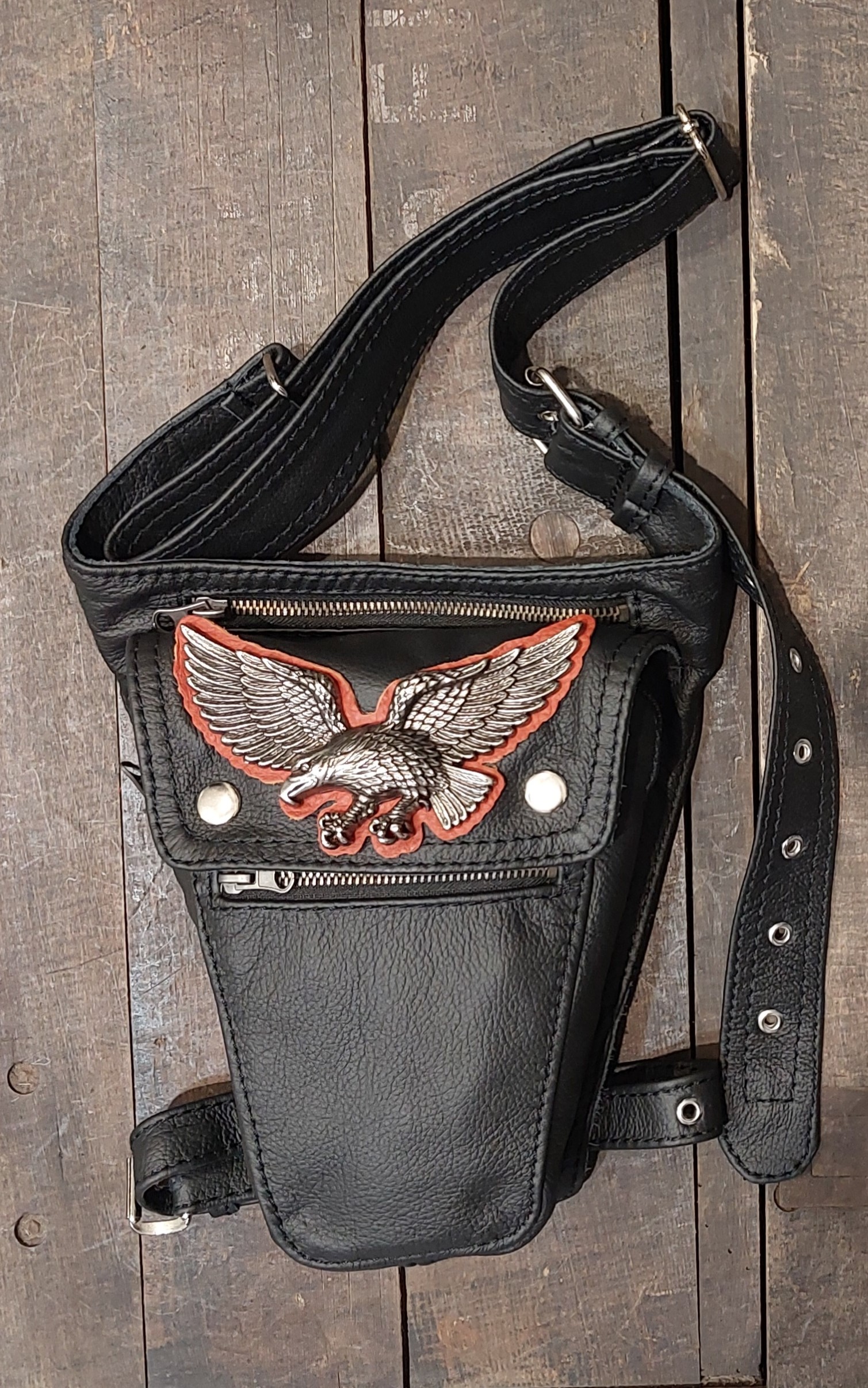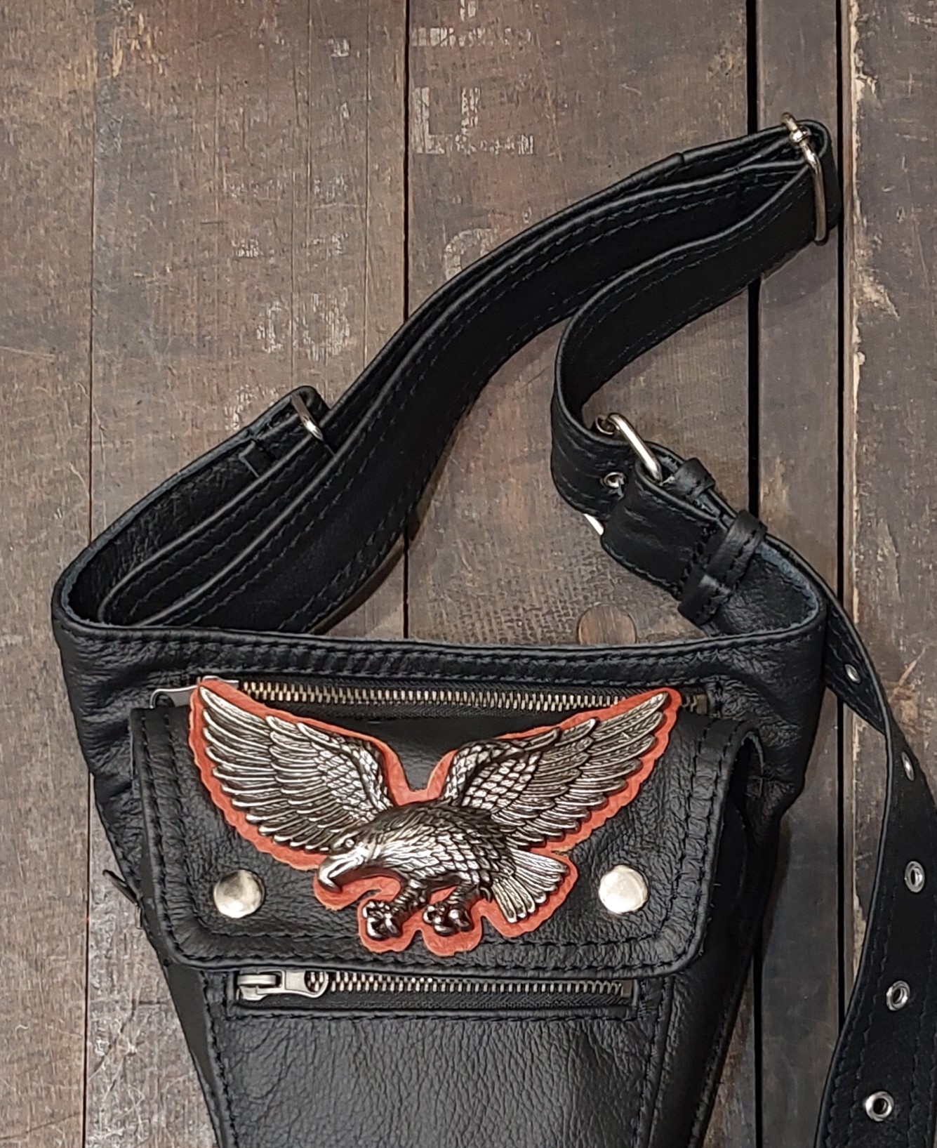 Torba wykonana z  mocnej, naturalnej skóry  bydlęcej, dodatkowo ozdobiona metalowym motywem orła.