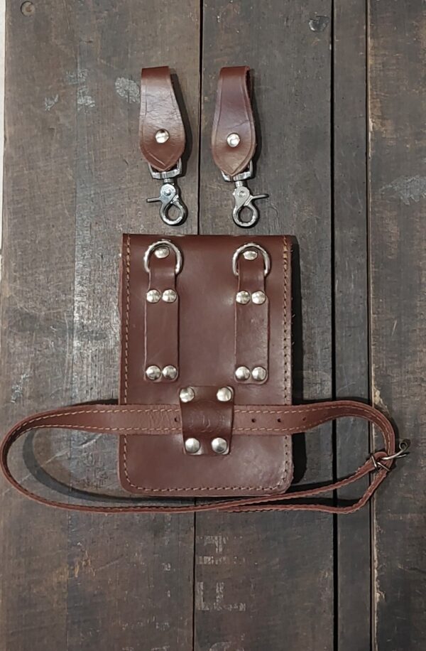 Motocyklowa saszetka to praktyczny dodatek stroju motocyklowego. Torba zapewnia szybki dostęp do niezbędnych dodatków jak dokumenty, telefon i inne drobiazgi. Saszetka posiada mocowanie na pasek do spodni lub solidne karabińczyki, które można wypiąć i użyć jako brelok do kluczy. Jej oryginalny projekt z metalowymi ozdobami wyróżni Was na tle innych.